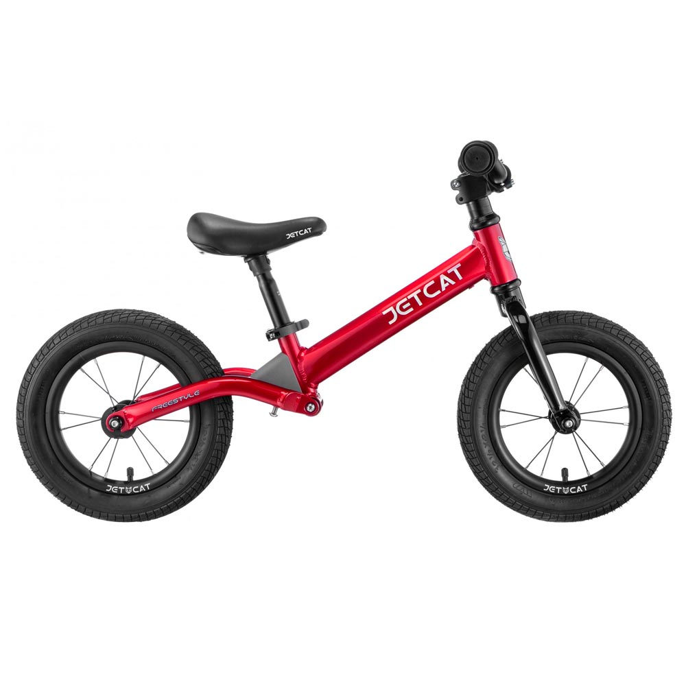 Беговел JETCAT 12" FREESTYLE II Red - заряженный беговел с надувными колесами и дополнительным амортизатором.